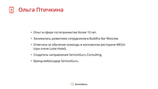 Документ обсуждает современные тенденции в обучении сотрудников нового поколения, акцентируя внимание на важности персонализации, вовлеченности и геймификации. Основные технологии и методики включают e-learning и игровые элементы, которые позволяют повысить эффективность обучения и мотивации персонала. Также подчеркивается связь между уровнем профессионализма сотрудников и их доходом, что делает обучение критически важным для успешной работы предприятий в сфере гостеприимства.