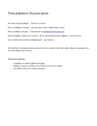 Како би реферат требало да изгледа? – Дат је пример пристојног реферата у даљем тексту.