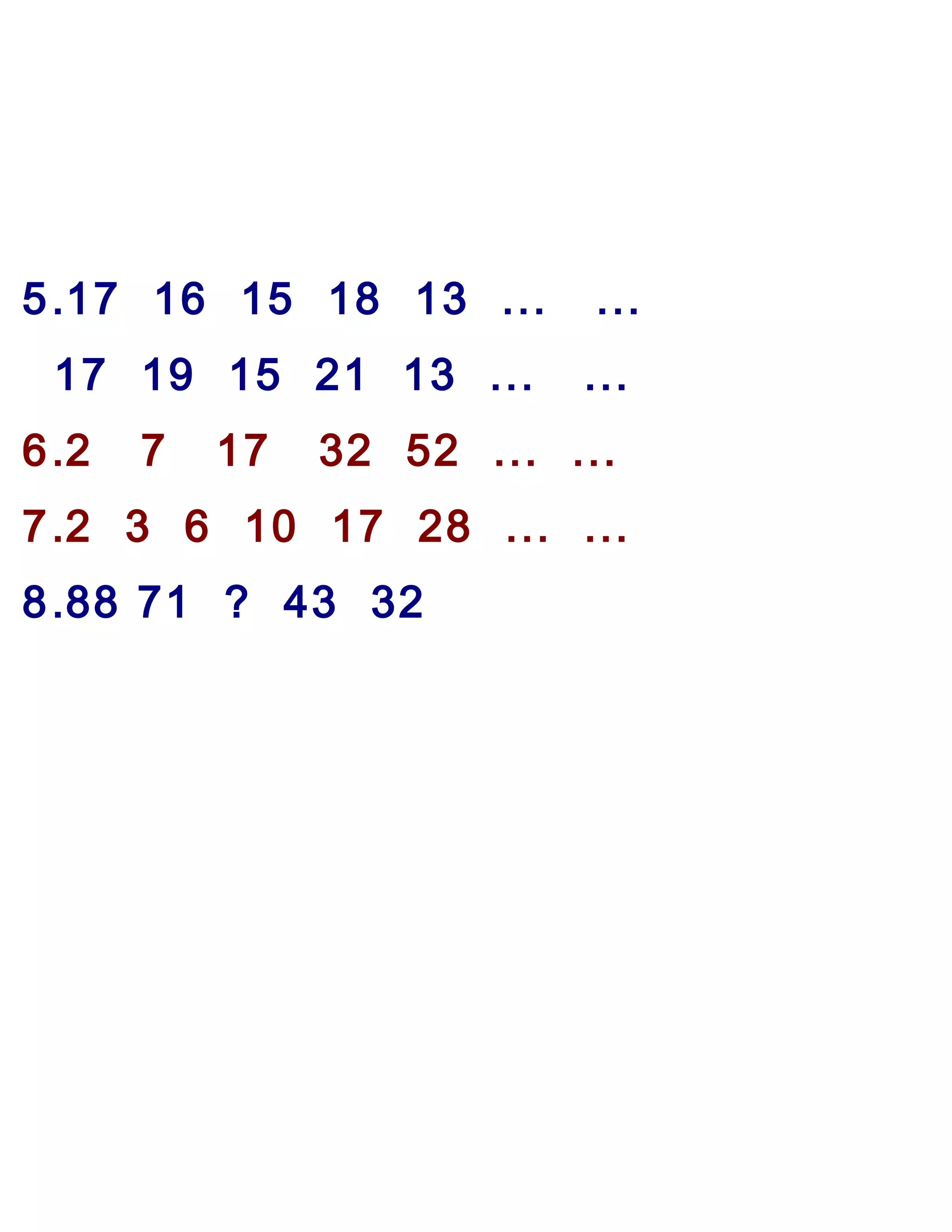 7 .2 3 6 10 17 28 ... ...