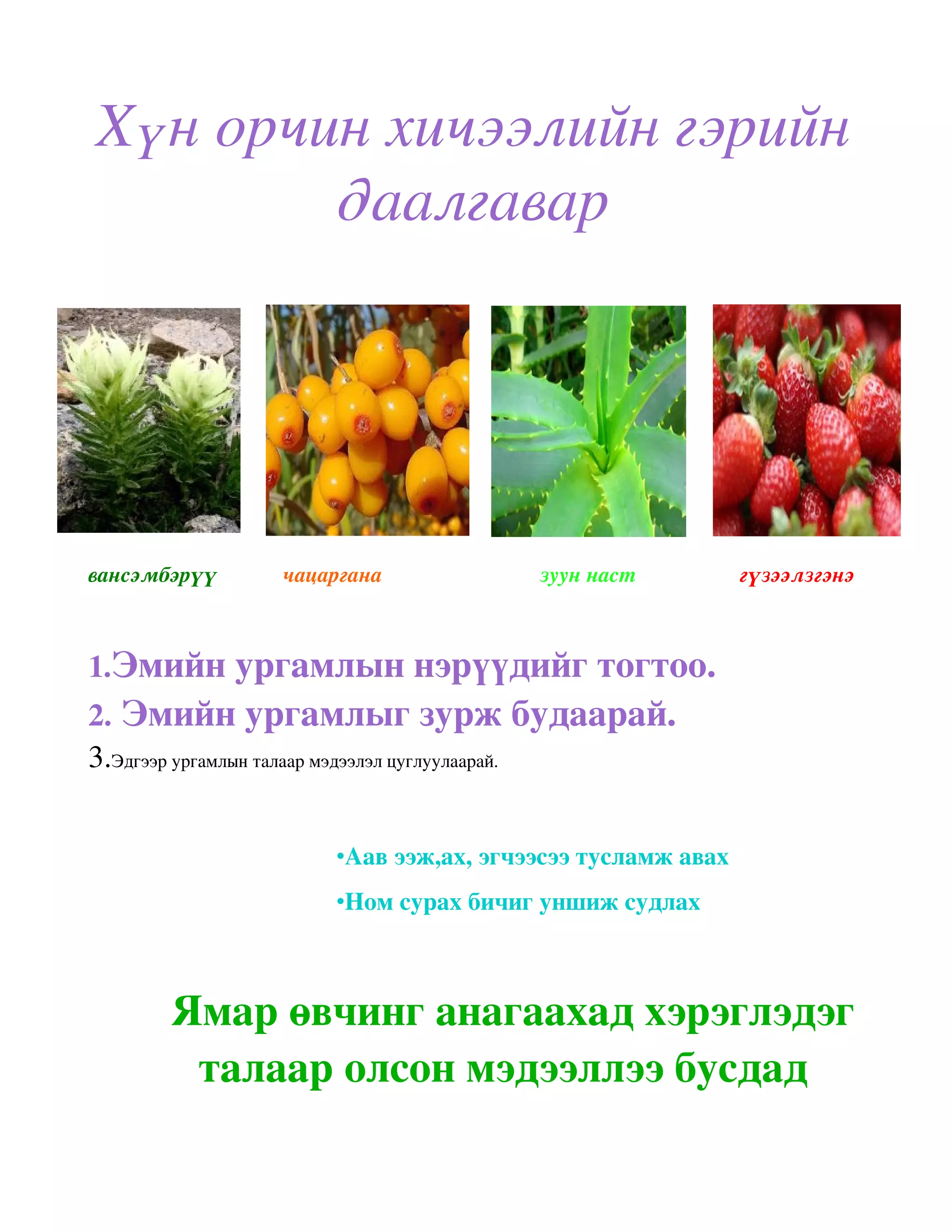3.Эдгээр ургамлын талаар мэдээлэл цуглуулаарай.