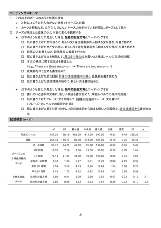 川口勇作・室田大介・後藤亜希・草薙邦広 (2016).「エッセイライティングにおける増加語数の時系列推移傾向とエッセ