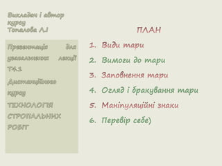 ТАРА МАЄ ВИГОТОВЛЯТИСЯ ВІДПОВІДНО ДО