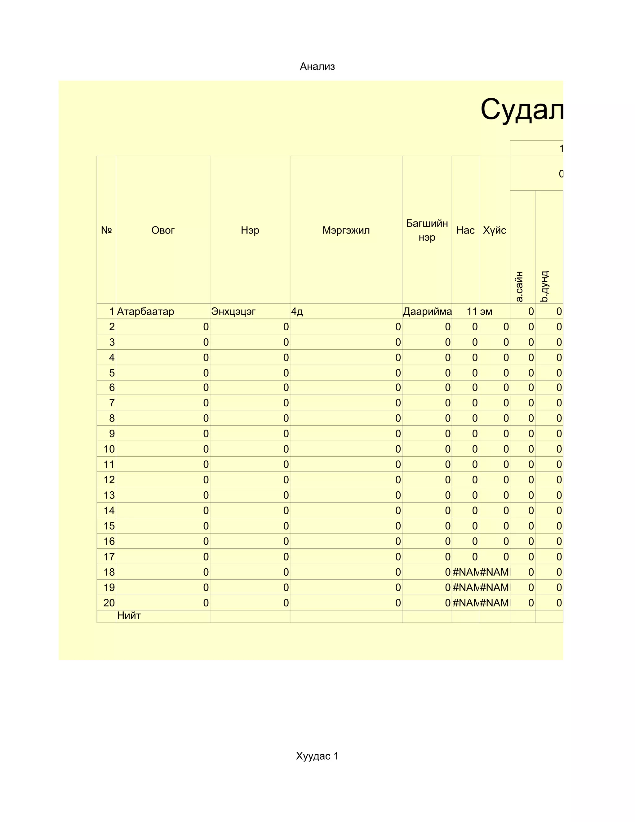 № Овог Нэр Мэргэжил Нас Хүйс