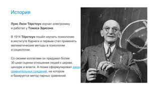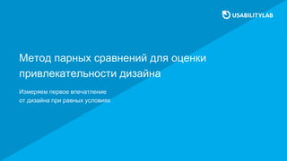 Документ описывает метод парных сравнений, разработанный Луисом Леоном Тёрстоуном для оценки предпочтений, включая его применение в дизайне и других областях. Метод позволяет выбирать между двумя вариантами сходного качества и получает объективные результаты, что делает его полезным для удаленных исследований и принятия решений. В частности, проведено исследование для выбора наиболее привлекательного дизайна для приложения банка, где первый вариант значительно превосходит старую версию по предпочтениям респондентов.