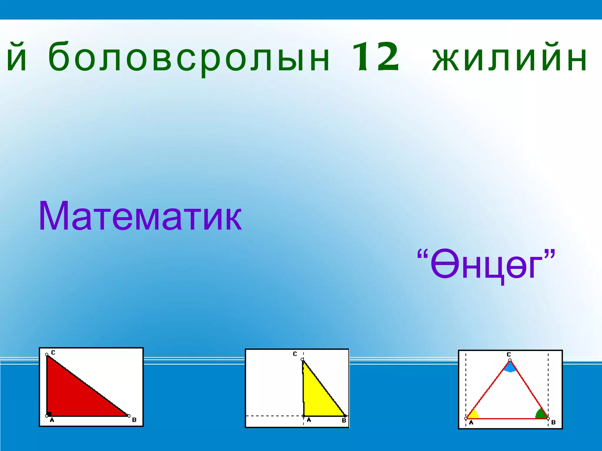 Энгийн төгсгөлийн цэгB цацраг BC цацраг BA 1 цэгт эхлэлтэй 2 цацрагаар үүсгэгдэх хавтгайн хэсгийг өнцөг гэнэ. Өнцөг гэж юу вэ? Энгийн төгсгөлийн цэгийг өнцгийн цэг гэдэг . ABC ийн в цэг . BA болон BC бол төгсгөлгүй шулуун дээрх цацрàã BA болон цацран BC ABC ийн талууд гэдэг . B C A
