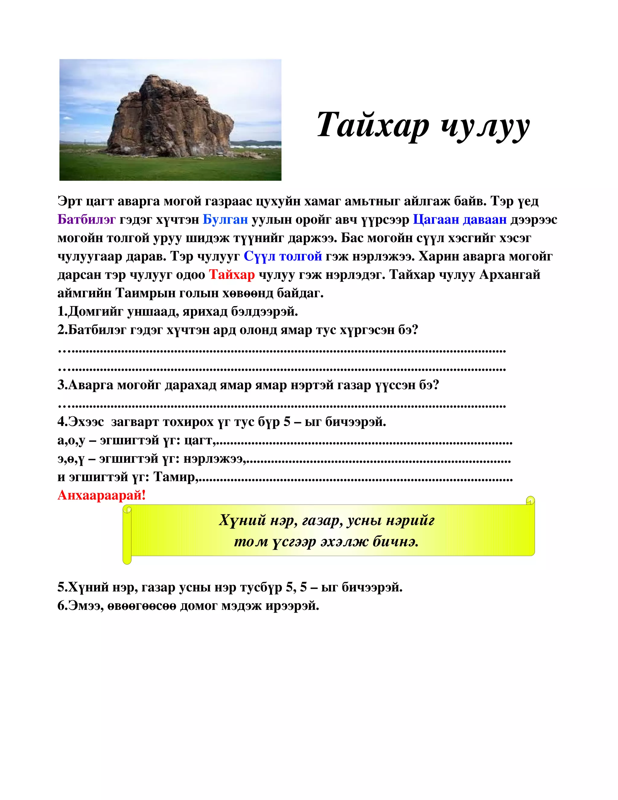 5.Хүний нэр, газар усны нэр тусбүр 5, 5 – ыг бичээрэй.