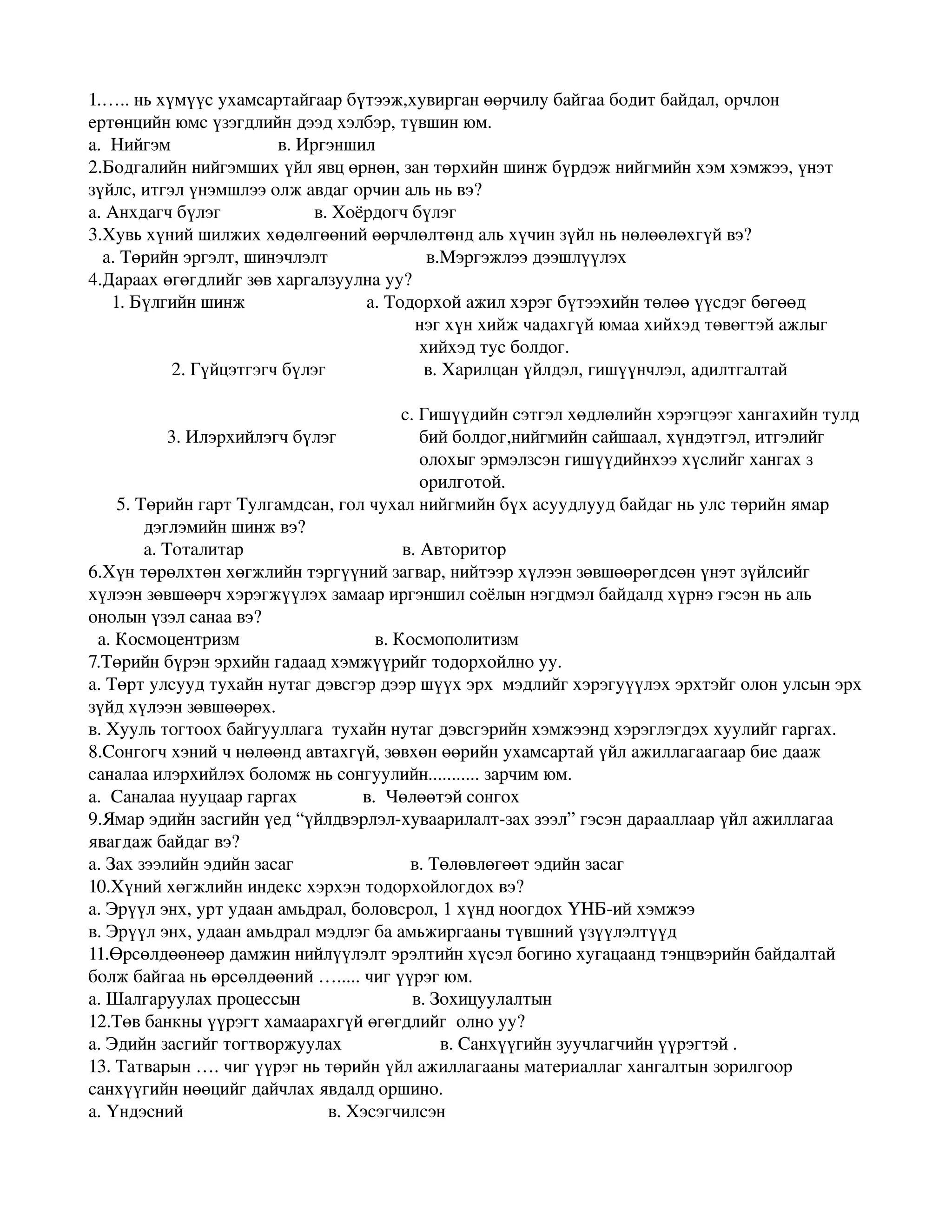 а. Нийгэм в. Иргэншил