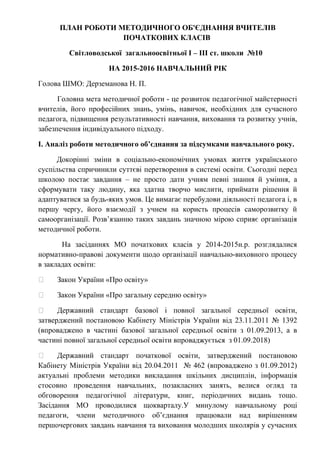 ПЛАН РОБОТИ МЕТОДИЧНОГООБ'ЄДНАННЯ ВЧИТЕЛІВ