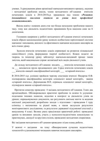 Головним напрямом у роботі методичного об’єднання вчителі початкових