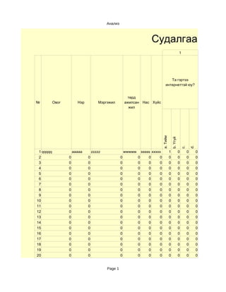 Санамж: Судалгааны хариултыг бөглөхдөө латин цагаан толгойн жижиг үсгээр бичнэ6