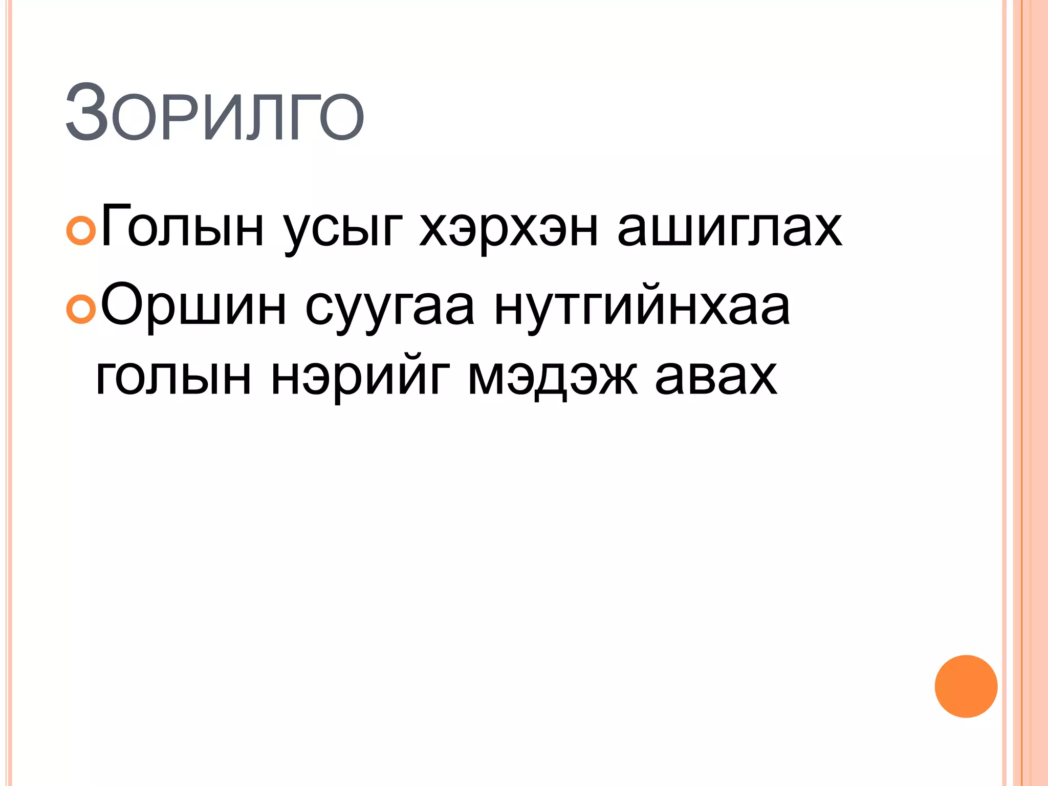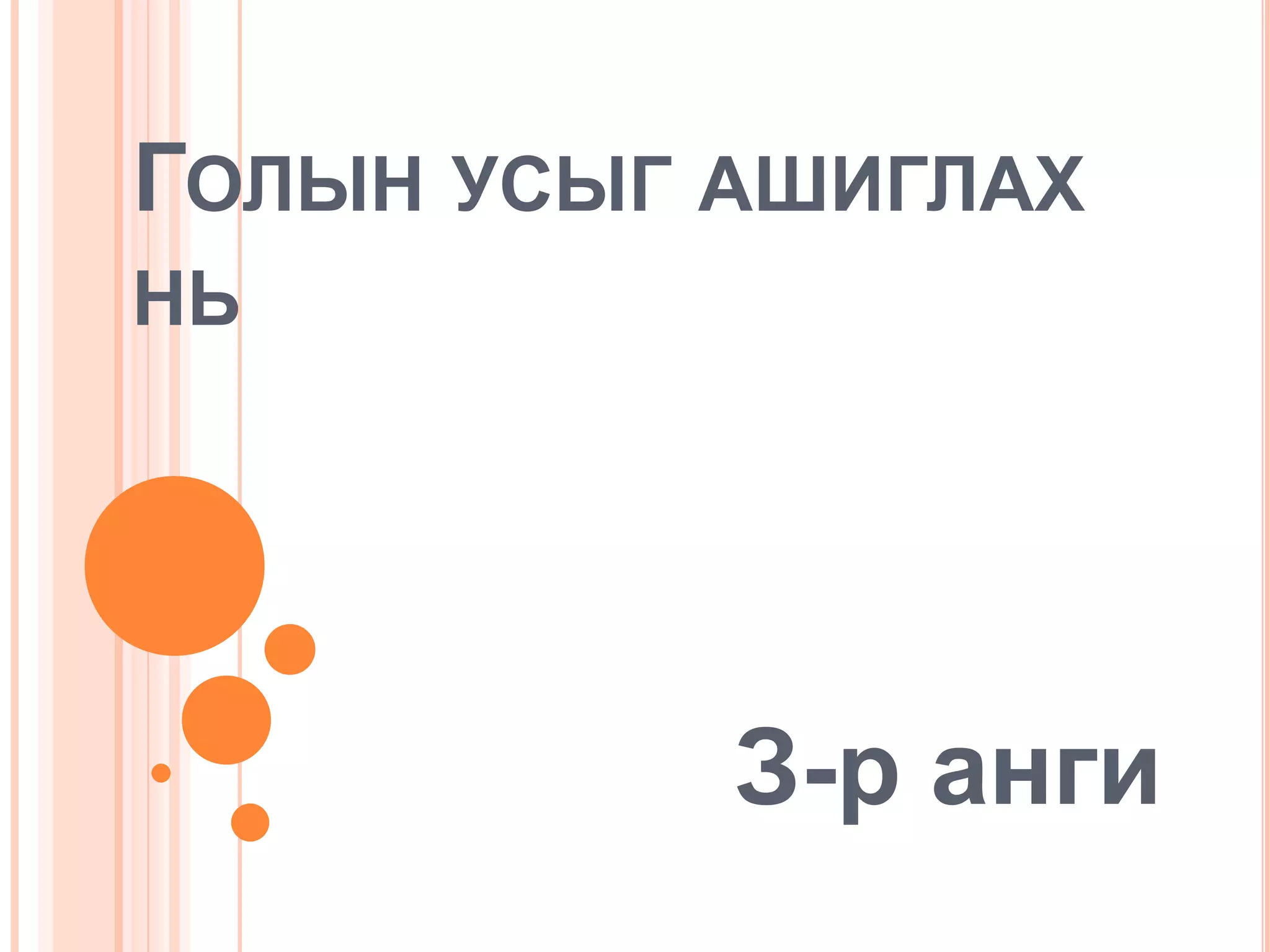 ГОЛЫН УСЫГ АШИГЛАХНЬ: