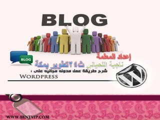 تتحدث الوثيقة عن كيفية إنشاء مدونة على موقع WordPress من خلال خطوات بسيطة تشمل التسجيل وتفعيل الحساب. بعد إعداد المدونة، يتم شرح كيفية تنسيق المحتوى وتخصيص إعدادات المدونة وتفعيل القوالب المختلفة. تحتوي الوثيقة أيضًا على معلومات حول إعدادات الخصوصية وإدارة المشاركات والتعليقات.