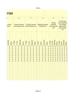 Санамж: Судалгааны хариултыг бөглөхдөө латин цагаан толгойн жижиг үсгээр бичнэ.