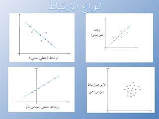 يتناول المستند علم الإحصاء الذي يهتم بجمع البيانات ومعالجتها وتحليلها من خلال مقاييس مختلفة مثل مقاييس النزعة المركزية والتشتت. كما يوضح العلاقة بين عدد أفراد الأسر واستهلاكها للماء، حيث يتمثل عدد الأفراد كمتغير مستقل واستهلاك الماء كمتغير تابع. يتطرق المستند أيضًا لمفهوم الارتباط بين المتغيرات، سواء كان إيجابيًا أو سلبيًا، ويشير إلى تمارين للتطبيق.