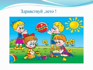 Документ описывает мероприятия, организованные для детей в честь лета, включая конкурсы, игры и праздники, такие как День Нептуна и День семьи, любви и верности. Воспитатели акцентируют внимание на важности безопасного поведения на дороге через мероприятия по ПДД. Завершение лета отмечается конкурсом на асфальте и праздником 'До свидания, лето!'.