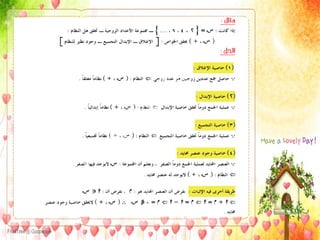 تناقش الوثيقة مفاهيم الأساسية للعمليات الثنائية والزمرة، مع تقديم ملاحظات وأمثلة وجداول توضيحية. تسلط الوثيقة الضوء على خواص العمليات الثنائية من خلال أمثلة عملية قدمتها الطالبة آية بسام جيتاوي.