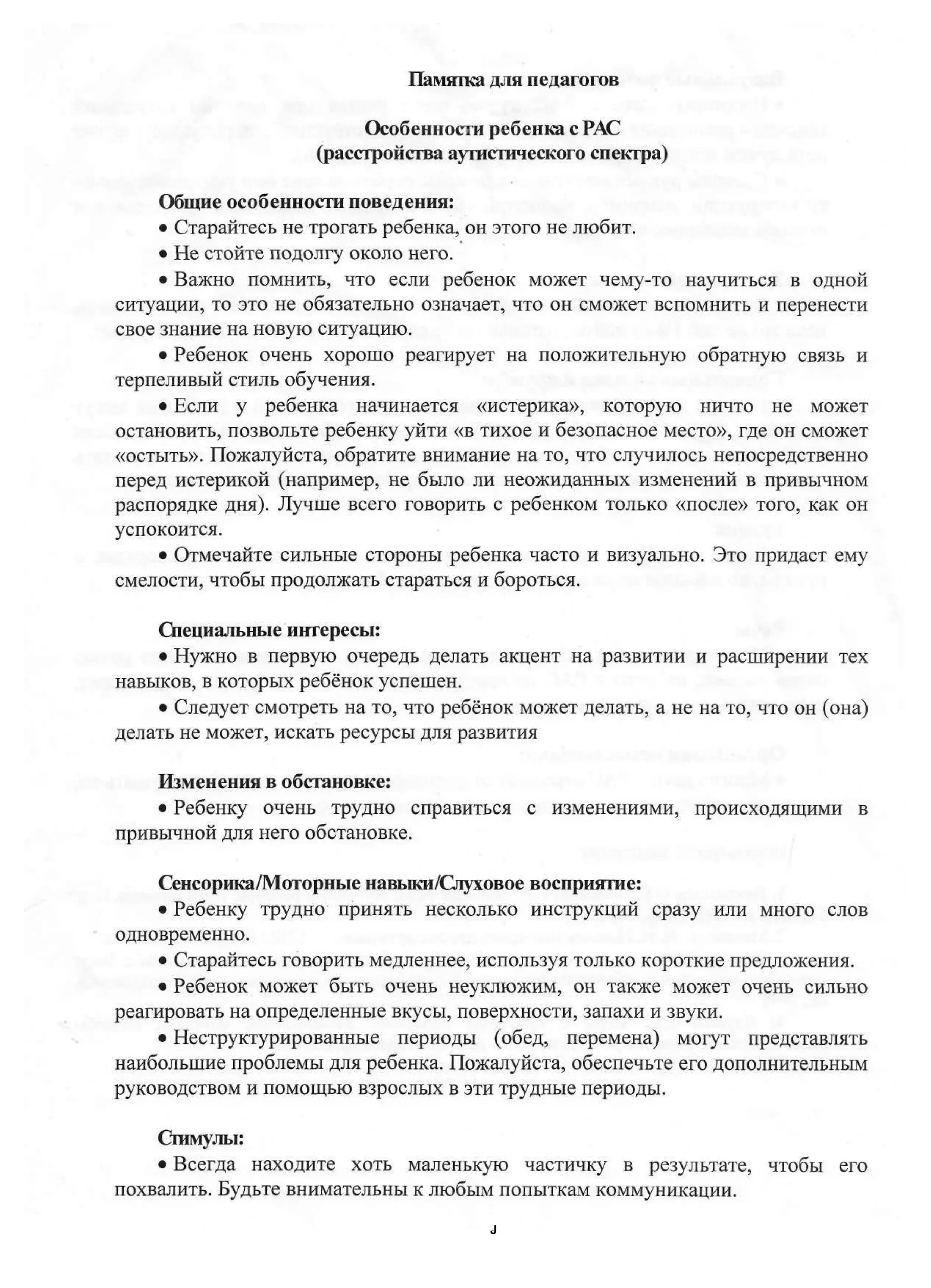 памятка для педагогов