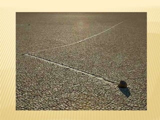 Η ξερή λίμνηRacetrackPlaya που βρίσκεται στην Κοιλάδα του . Θανάτου, στην Καλιφόρνια των Ηνωμένων Πολιτειών δεν είναι μόνον ένα παράξενο τοπίο αλλά αποτελεί και τον χώρο που συμβαίνει ένα από τα πιο παράξενα φαινόμενα στην Γη - μεγάλες πέτρες (κάποιες ζυγίζουν εκατοντάδες κιλά) έχουν την συνήθεια να .μετακινούνται αφήνοντας χαραγμένα τα ίχνη της πορείας τους!Το φαινόμενο (sailingstones) που έχει τρελάνει αρκετό κόσμο, αποδίδεται από τους επιστήμονες σε πολύ ισχυρούς ανέμους σε συνδυασμό με την σύσταση του εδάφους το οποίο κάποιες φορές γίνεται (όταν βρέξει) λασπώδες με πολύ χαμηλό συντελεστή τριβής (πολύ γλιστερό) διευκολύνοντας έτσι την μετακίνηση των βράχων από τον δυνατό αέρα. Το μόνο που δεν έχει εξηγηθεί πλήρως είναι γιατί κάποιες φορές κοντινοί βράχοι κινούνται σε διαφορετικές κατευθύνσεις, δίνοντας τροφή σε όσους πιστεύουν σε μεταφυσικά φαινόμενα να καταρρίπτουν αυτήν την ορθολογική εξήγηση!