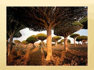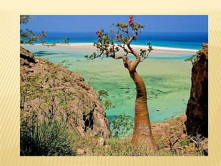 Τα νησιά Socotra(ανοιχτά της Υεμένης, στο λεγόμενο Κέρας της Αφρικής) μοιάζουν να έχουν ξεπηδήσει από έναν απίστευτο φανταστικό κόσμο. Παράξενα φυτά και περίεργοι κορμοί δέντρων συνθέτουν την πανίδα αυτών των νησιών - θα ένοιωθε κανείς κάτι σαν να βρίσκεται σε ένα κόσμο που μοιάζει αλλά δεν βρίσκεται στον πλανήτη Γη. Αν μας ζήταγε κανείς να βαθμολογήσουμε μάλλον θα τα τοποθετούσαμε πρώτα στην λίστα με τα πλέον περίεργα μέρη της γης μας, μαζί με το επόμενο. Η αλήθεια είναι ότι όντως αυτά τα νησιά τα ξέχασε ο χρόνος - καθώς αποκολλήθηκαν πριν από 20 περίπου εκατομμύρια χρόνια από την Αφρική, παρέμειναν σχεδόν αναλλοίωτα και αυτό που θα αντικρύσει ο επισκέπτης σίγουρα θα του μείνει αξέχαστο! Το 1/3 των φυτών του νησιού δεν υπάρχει πουθενά αλλού στον κόσμο και το περίεργο περιβάλλον δημιουργεί μια απόκοσμη αίσθηση!
