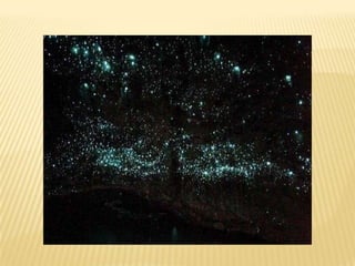 Στο Waitomo τηςΝέας Ζηλανδίας (νότια του Auckland, στο Βόρειο νησί) υπάρχει μια σειρά από μοναδικά σπήλαια που δεν είναι απλά όμορφα αλλά έχουν έναν ιδιαίτερο .φωτισμό. Όχι από λάμπες αλλά από τα φωσφορίζοντα σκουλήκια του είδους Arachnocampaluminosa, που υπάρχουν μέσα σε αυτά τα σπήλαια κατά χιλιάδες. Τα φωτεινά αυτά ζωύφια υφαίνουν ιστούς από την οροφή, οι οποίοι κρέμονται και προσελκύουν έντομα με το απαλό φως τους. Το θέαμα είναι εκπληκτικό καθώς χιλιάδες "φωσφορίζουσες κλωστές", θυμίζουν σκηνές από το Avatar. Να θυμίσουμε ότι η ταινία γυρίστηκε στην Νέα Ζηλανδία