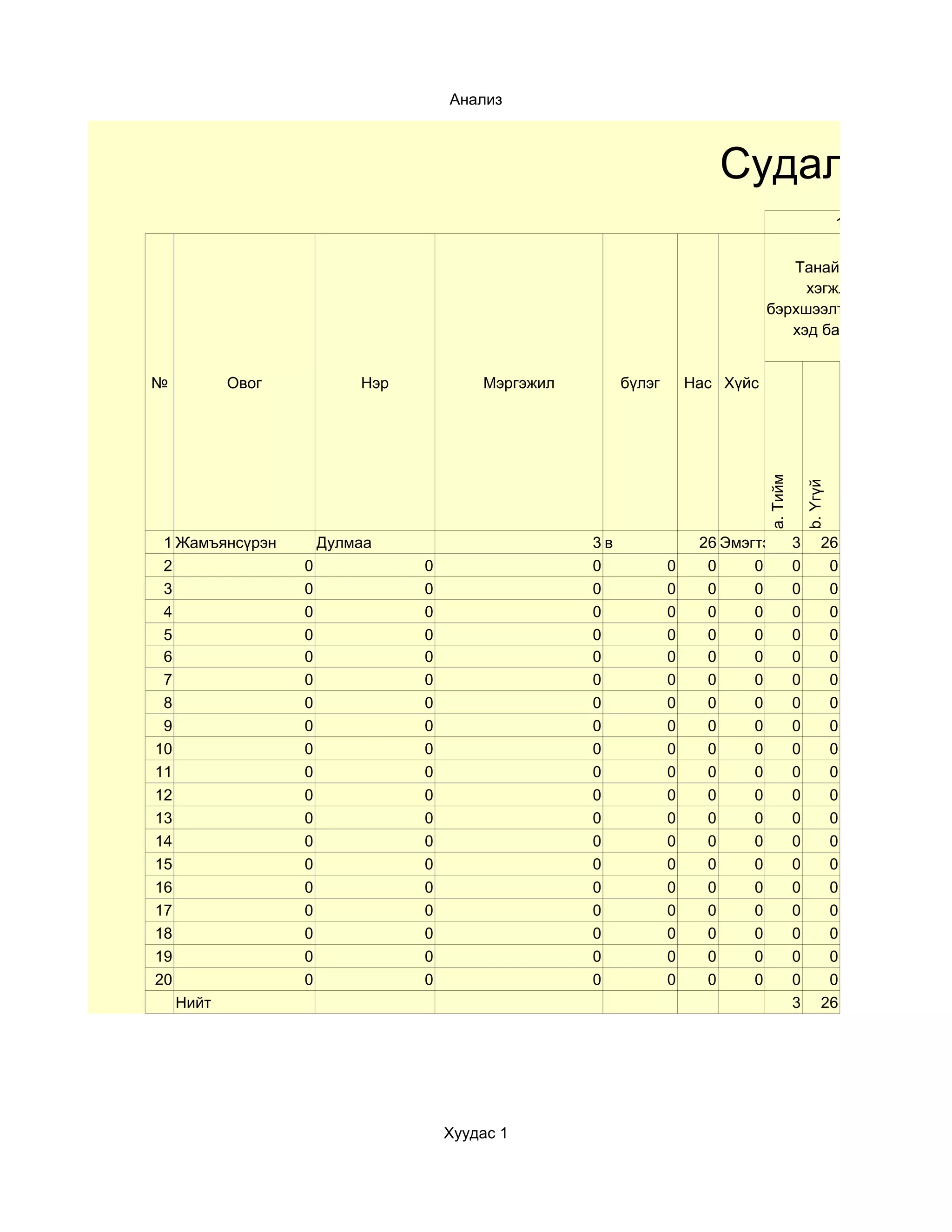 1 Жамъянсүрэн Дулмаа 3в 26 Эмэгтэй 3 26