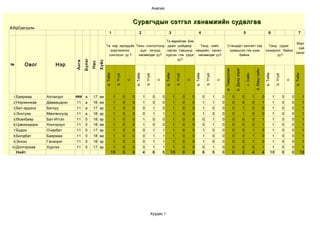 Санамж: Судалгааны хариултыг бөглөхдөө латин цагаан толгойн жижиг үсгээр бичнэ.