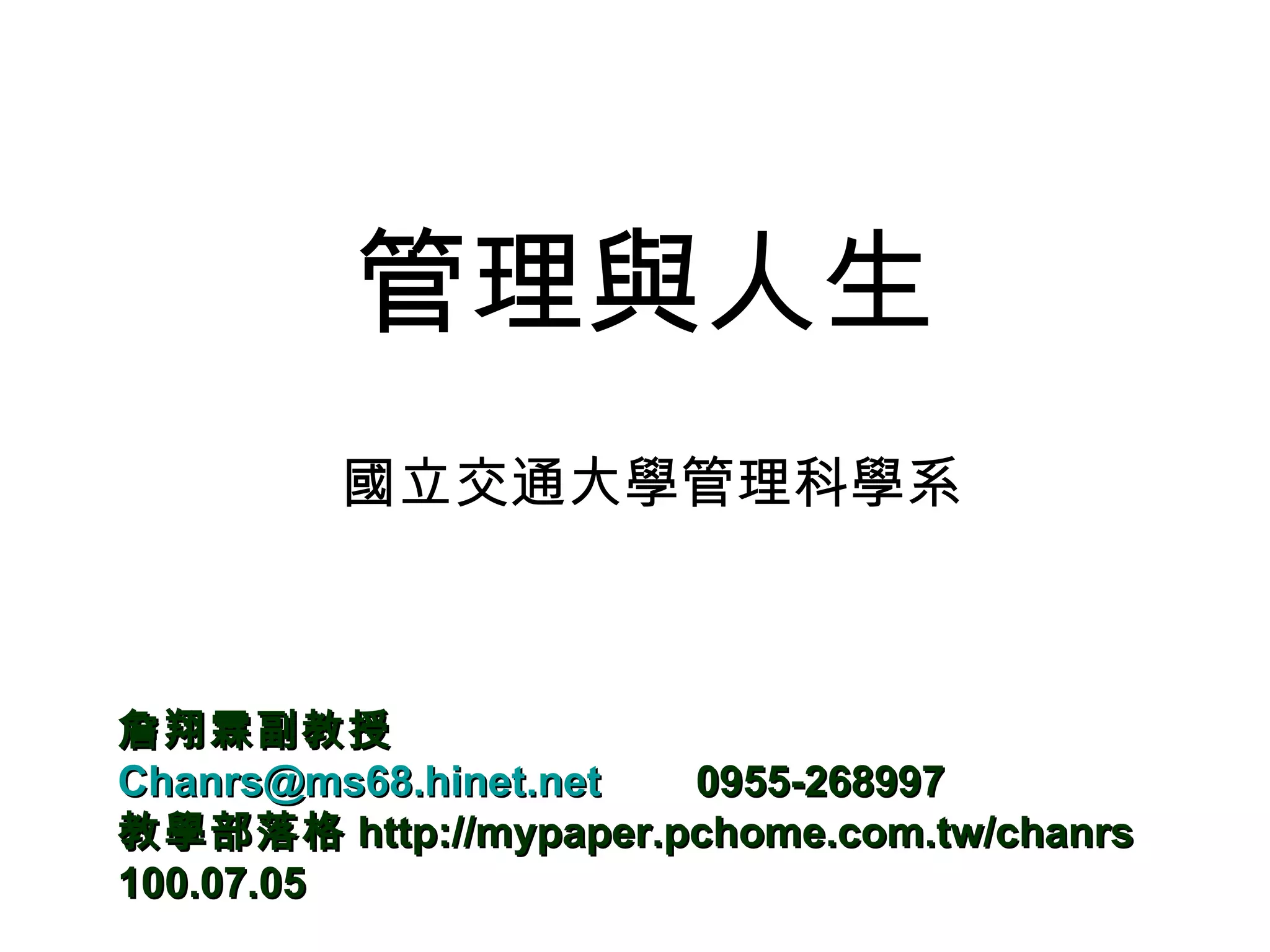 詹翔霖副教授介绍了管理学的定义和重要性,强调管理是在组织中通过规划、组织、领导和控制来实现共同目标的活动。管理学的发展结合了多种学科,并且强调实用性和逻辑思维。有效的管理需要理解员工行为和组织绩效,以达到最佳的资源利用和团队合作。