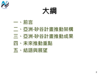 亞洲‧矽谷推動方案旨在透過發展物聯網產業和強化創新創業生態系,促進未來產業發展。報告總結過去一年的推動成果,包括國內外企業的響應和對創新創業生態的貢獻,並展望未來的發展重點。計畫獲得多家企業的支持,伴隨著新創項目的增加和各項資金的投入,預期將持續加強台灣在全球科技產業的競爭力。