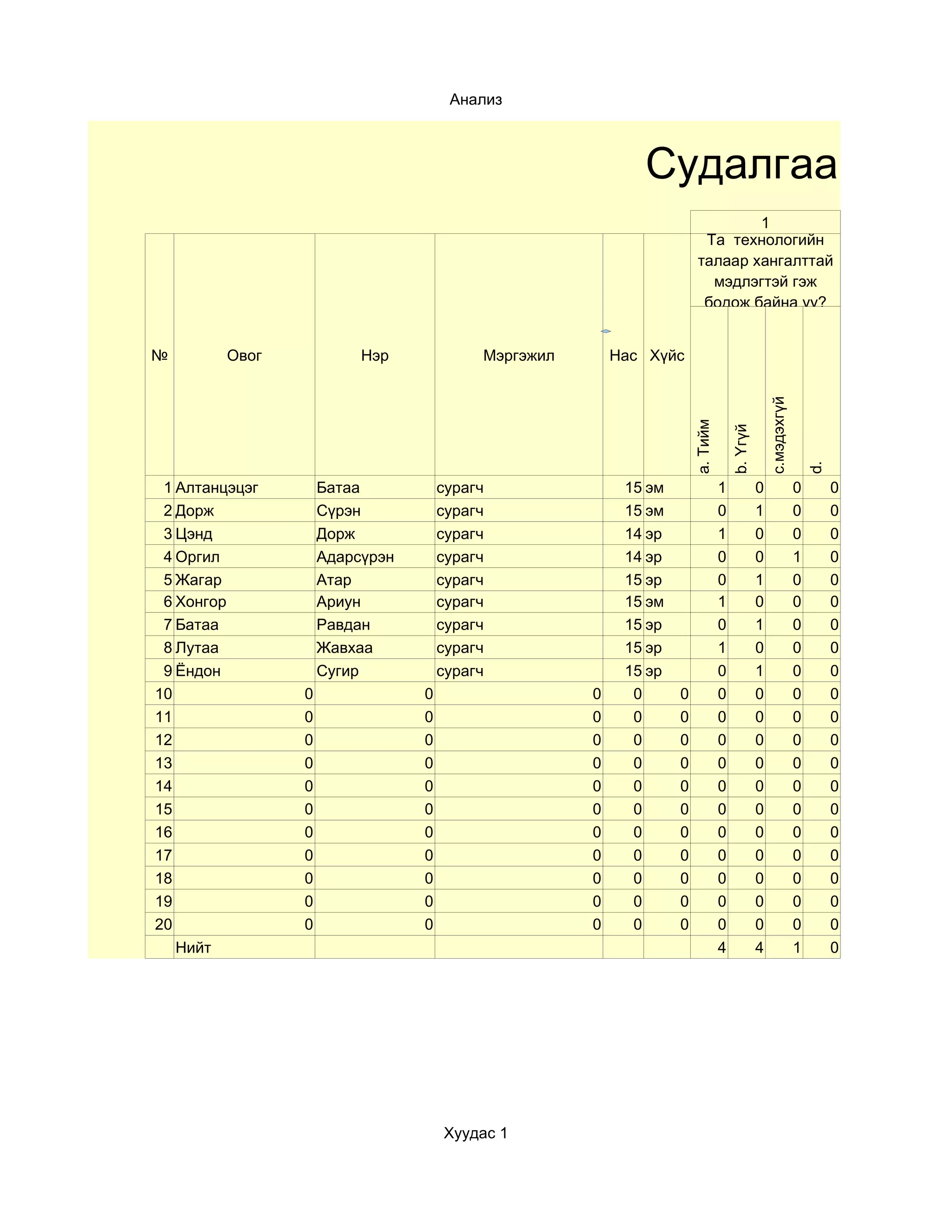 Судалгаанд оролцсон нийт 0 0