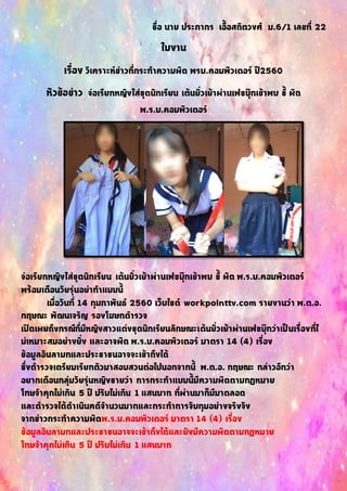 อยากเตือนกลุ่มวัยรุ่นหญิงชายว่า การกระทาแบบนี้มีความผิดตามกฎหมาย