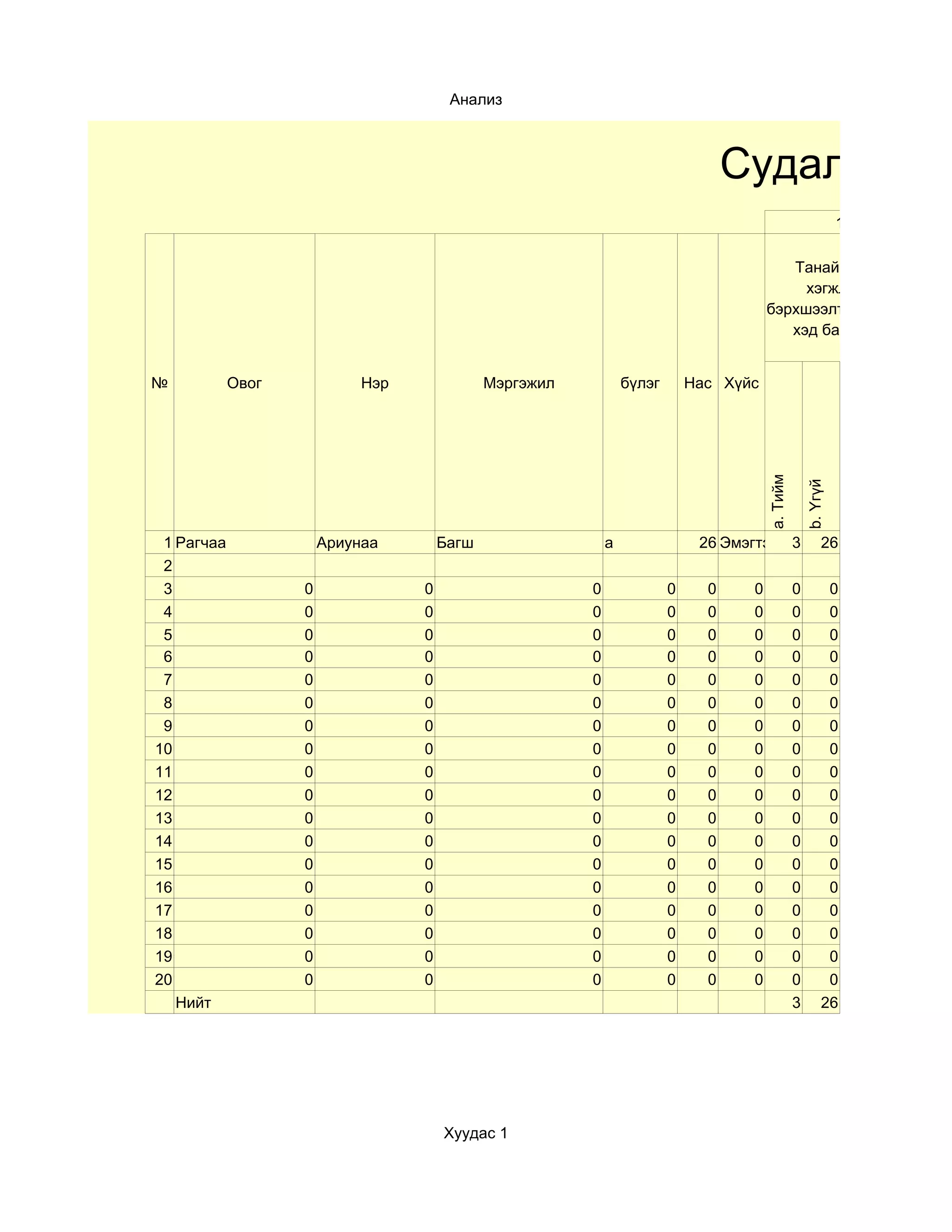 1 Рагчаа Ариунаа Багш а 26 Эмэгтэй 3 26