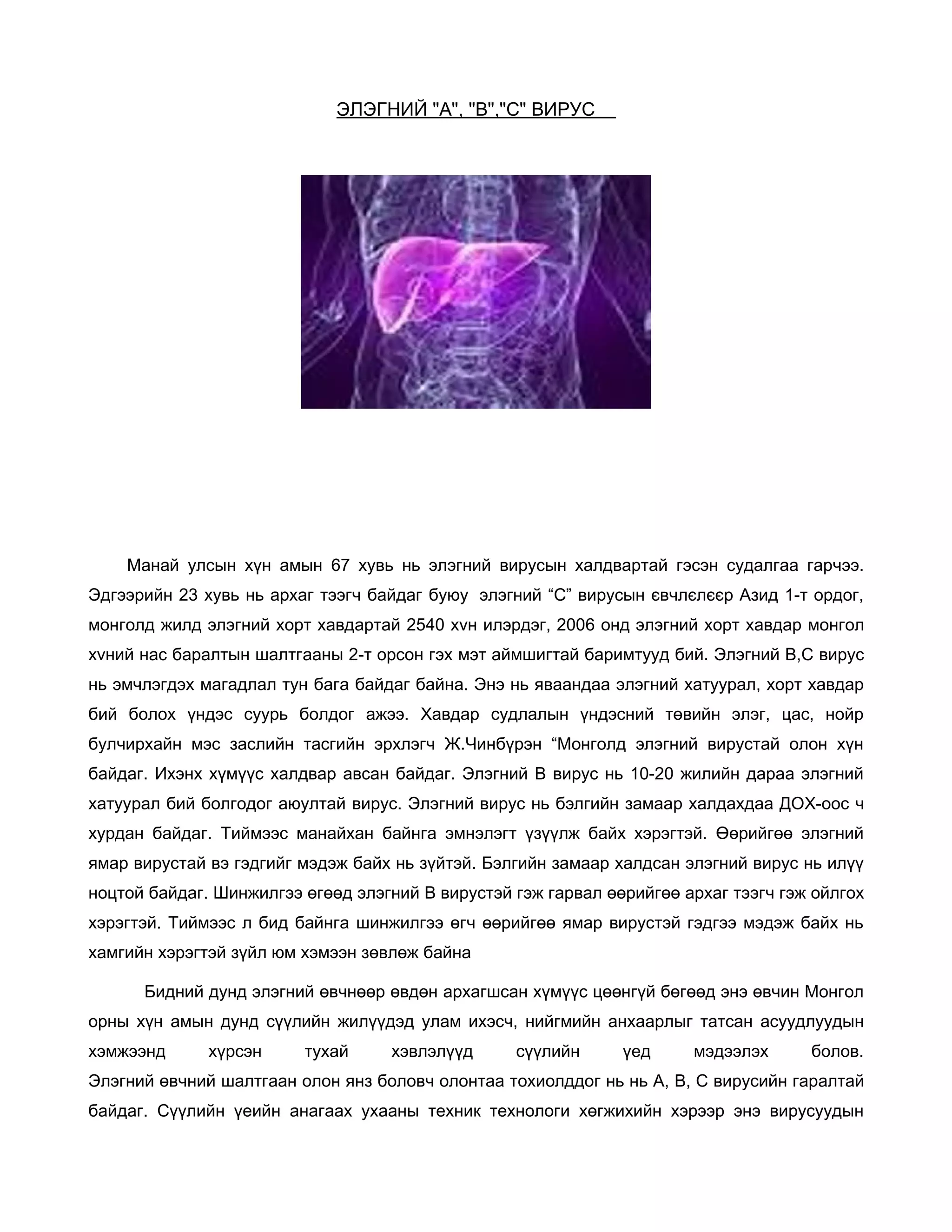 хvний нас баралтын шалтгааны 2-т орсон гэх мэт аймшигтай баримтууд бий. Элэгний В,С вирус