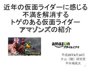 近年の仮面ライダーに感じる 不満を解消する トゲのある仮面ライダー の紹介 平成29年6月14日 片山(徹)研究室 平木場風太 1