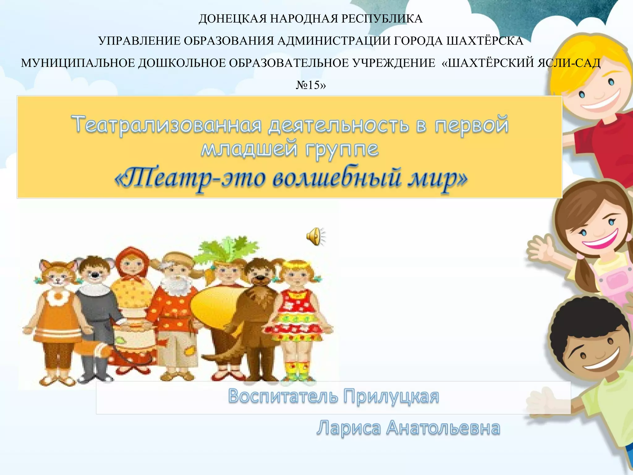 Документ рассматривает значение театрализованной деятельности в детском саду как средства эмоционально-эстетического воспитания детей. Он подчеркивает, что театральная деятельность способствует развитию социальных навыков и самовыражения, а также улучшает речь, моторику и творческие способности. Театр помогает детям понять окружающий мир через игру и литературные произведения, что способствует коррекции поведения и формированию коллективизма.