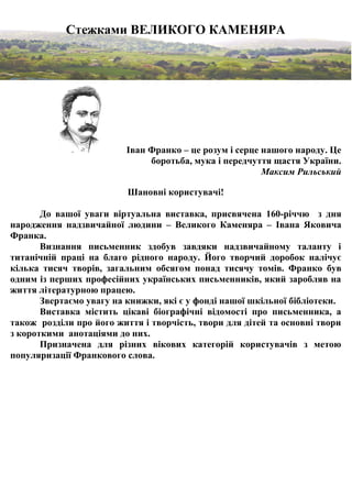 Про всю велич Франкового життя і творчості, про всі цікаві факти його незвичайної