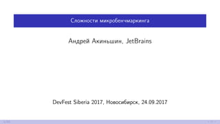 Документ исследует сложности микробенчмаркинга на примере C#, обсуждая важность и применение бенчмарков для анализа производительности и сравнения алгоритмов. В ходе презентации рассматриваются различные аспекты, такие как количество итераций, работа с памятью, условные переходы и эффект наблюдателя. Также упоминается о наблюдении производительности программ и оптимизации через постоянное складывание.