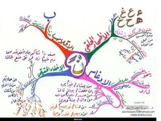 يتناول الوثيقة مفهوم الخرائط الذهنية وأهميتها في تنظيم المعلومات والأفكار بطريقة مرئية تسهل تذكرها واسترجاعها. كما يتناول كيفية استخدام الألوان والرموز لزيادة وضوح الأفكار وعرض المعلومات بشكل جذاب. تؤكد الوثيقة على فوائد الخرائط الذهنية في تعزيز الفهم والتحصيل الدراسي.