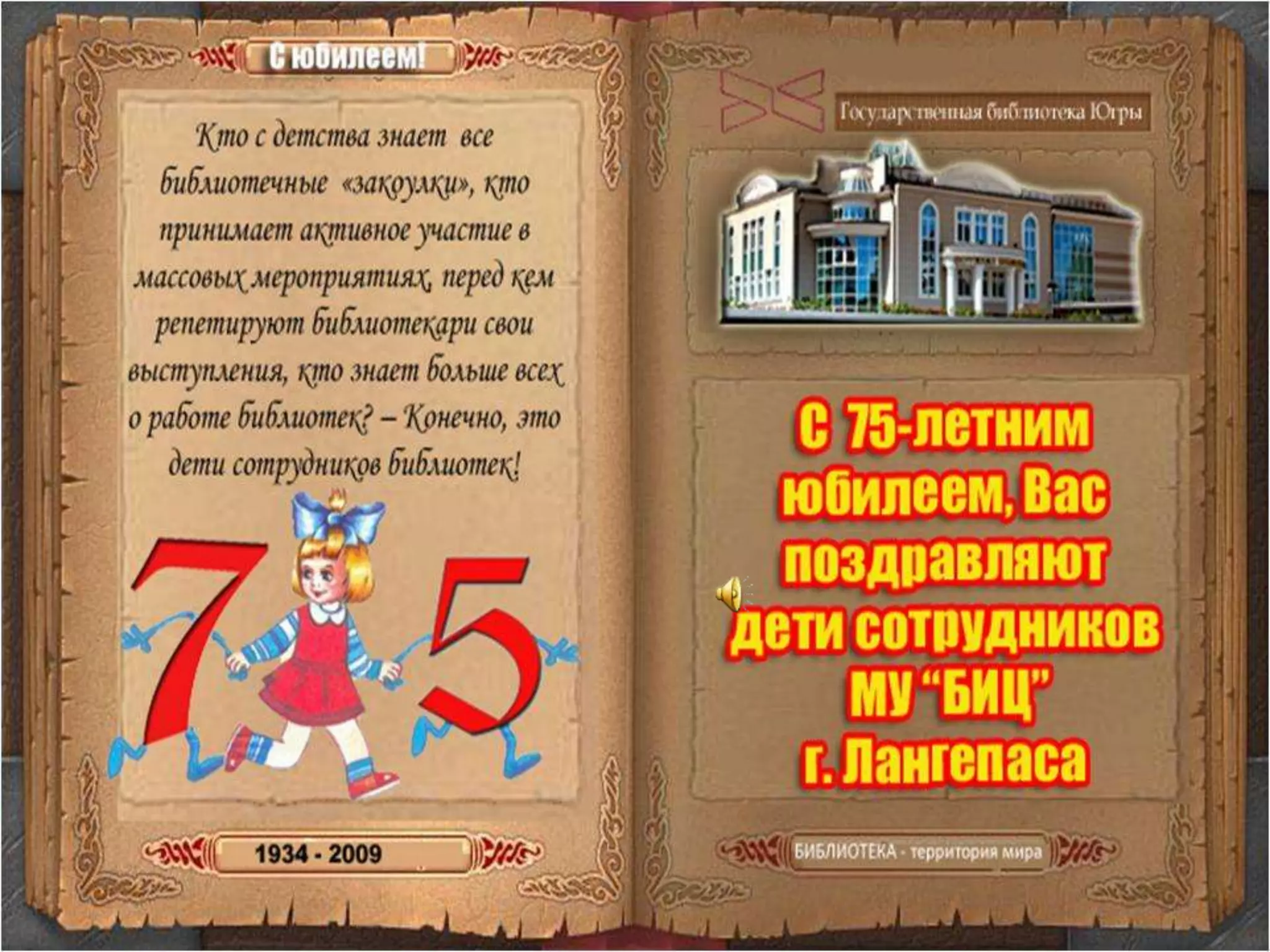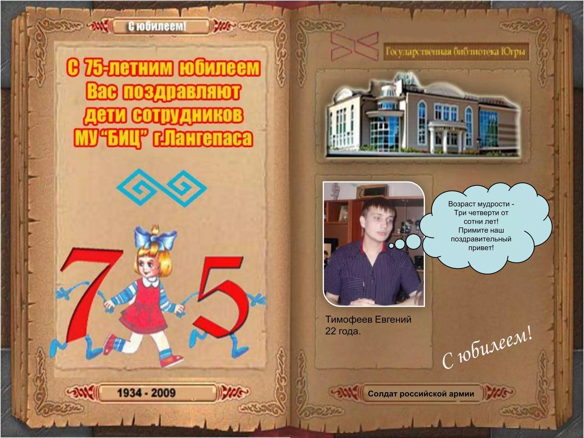 Документ содержит поздравления с юбилеем библиотеки от разных людей разных возрастов, выражающих свою любовь и благодарность за знания и возможности, предоставляемые этой библиотекой. Участники поздравительной акции, начиная с малышей и заканчивая взрослыми, подчеркивают важность чтения и вклад библиотеки в их жизнь. Каждое сообщение наполнено искренностью, надеждой и положительными пожеланиями к будущему библиотеки.