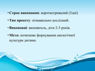 •Мета: початкове формування екологічної