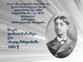 ნიკო (ნიკოლოზ) ასლანისძე ფიროსმანაშვილი ( ნიკო ფიროსმანი ) (დ. 1862, სოფ.მირზაანი ―გ. 1918, თბილისი), ქართველი პრიმიტივისტი მხატვარი. ნიკო ფიროსმანაშვილი ახალგაზრდობაში 1880 წ.
