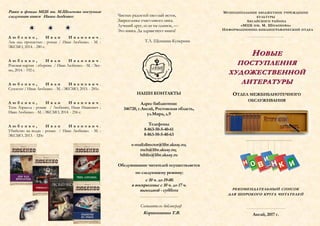 Документ представляет собой список новых поступлений книг Ивана Любенко в муниципальную библиотеку им. М. Шолохова с 2017 года, включает их названия и краткие аннотации. Основное внимание уделяется детективным жанрам, в которых автор использует яркие исторические контексты. Рекомендуется ознакомиться с творчеством Любенко для любителей классического детектива.