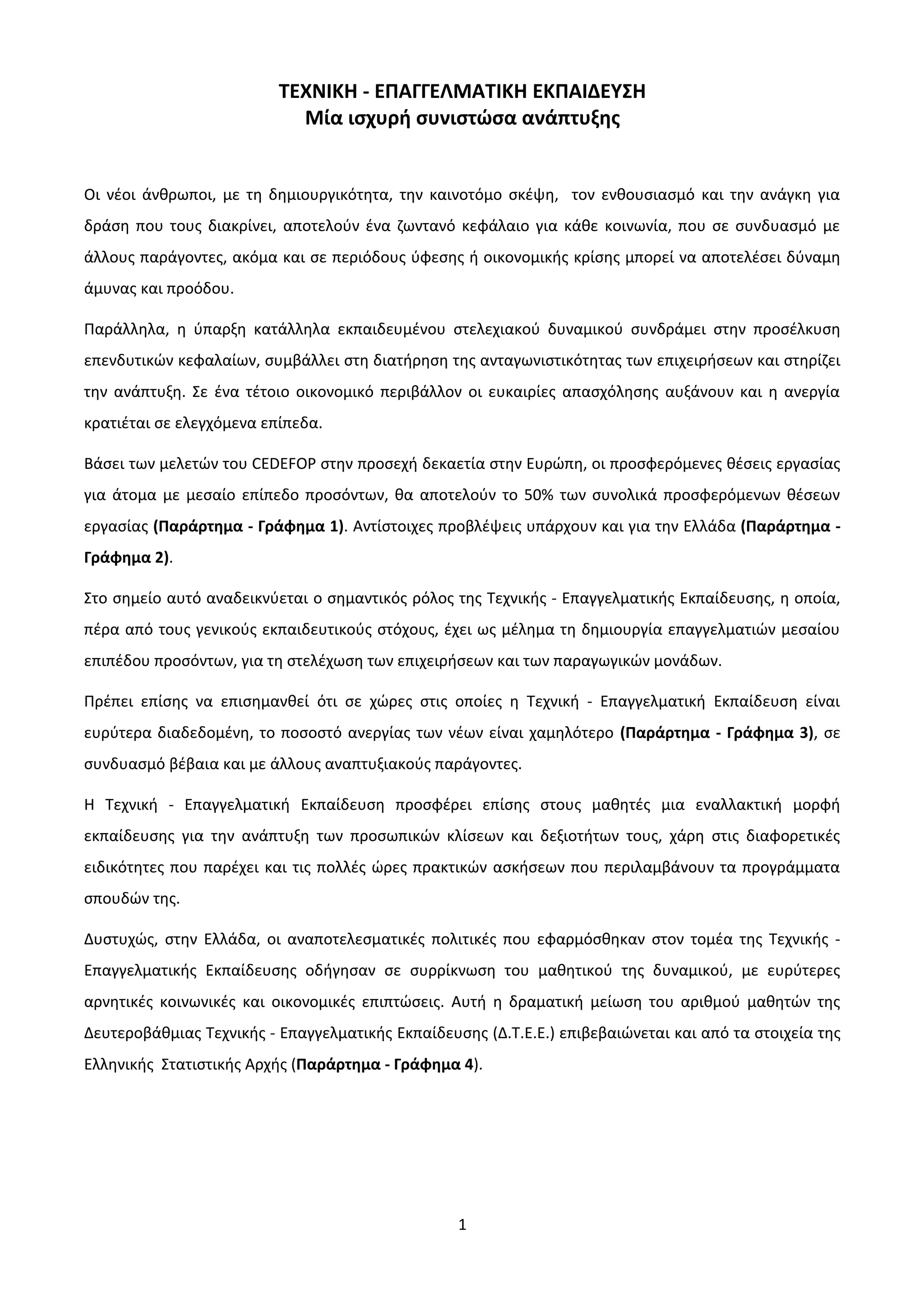 Στο σημείο αυτό αναδεικνύεται ο σημαντικός ρόλος της Τεχνικής - Επαγγελματικής Εκπαίδευσης, η οποία,