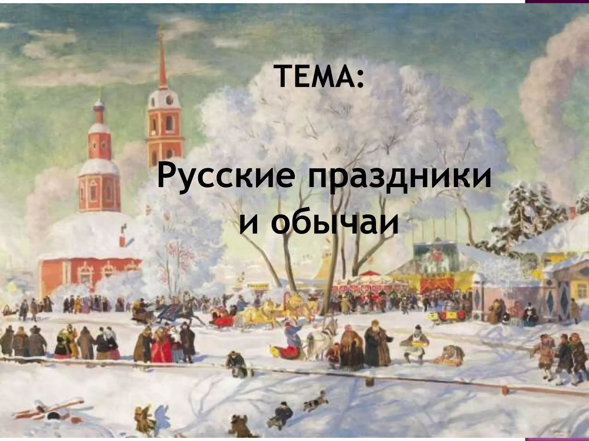 Документ описывает русские праздники, основное внимание уделяя празднику Масленицы, который отмечается в конце февраля - начале марта и символизирует провод зимы. В тексте говорится о приготовлениях к празднику, традиционных играх, а также значении блинов как символа солнца. Также упоминается история празднования Нового года в России и влияние Петра I на его перенос на 1 января.