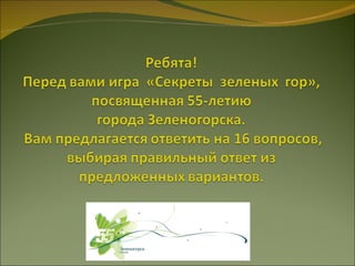 Документ содержит информацию о городской библиотеке Зелёногорска, её детском отделе и различных событиях, связанных с городом. Упоминаются значимые личности, учреждения и исторические моменты, отражающие культурную жизнь и мероприятия сообщества. Также перечисляются места и организации, имеющие отношение к истории и развитию города.