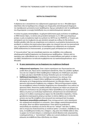 ΠΡΟΤΑΣΗ ΤΗΣ “ΚΟΙΝΩΝΙΑΣΑΞΙΩΝ” ΓΙΑ ΤΟ ΜΕΤΑΝΑΣΤΕΥΤΙΚΟ ΠΡΟΒΛΗΜΑ