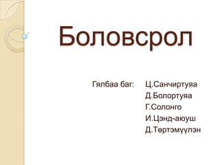 ДУНД, ДЭЭД БОЛОВСРОЛООР ЭЗЭМШИХ ЧАДВАР PDF