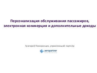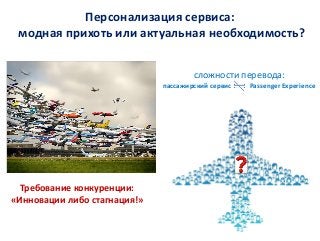 Документ обсуждает персонализацию обслуживания пассажиров в авиаперевозках, подчеркивая важность инноваций для успешной конкуренции. Он акцентирует внимание на новых потребностях современных авиапутешественников, таких как уникальные впечатления и гибкость в тарифах, и выделяет возможности получения дополнительных доходов через персонализированные платные услуги. Также рассматриваются технологии и стратегии, способствующие успешной реализации платных услуг и управлению клиентским опытом.