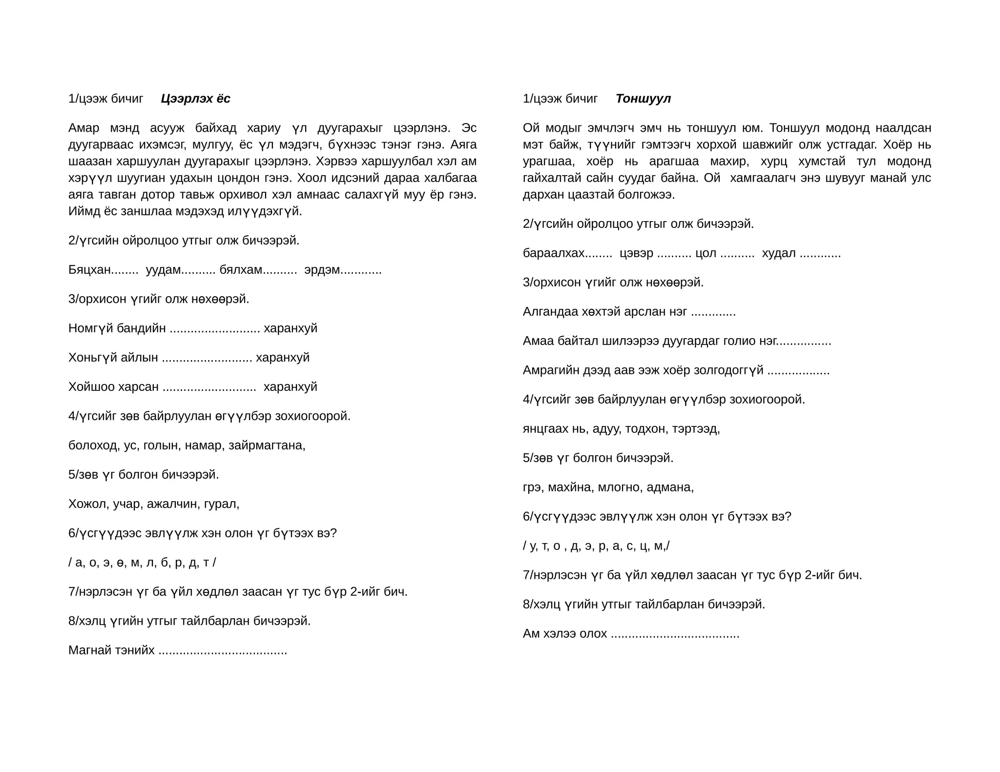7/нэрлэсэн үг ба үйл хөдлөл заасан үг тус бүр 2-ийг бич. 8/зүйр үгийн утгыг тайлбарлан бичээрэй.