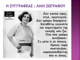 Είναι γνωστό ότι η συγγραφέας Λιλή Ζωγράφου, που είχα