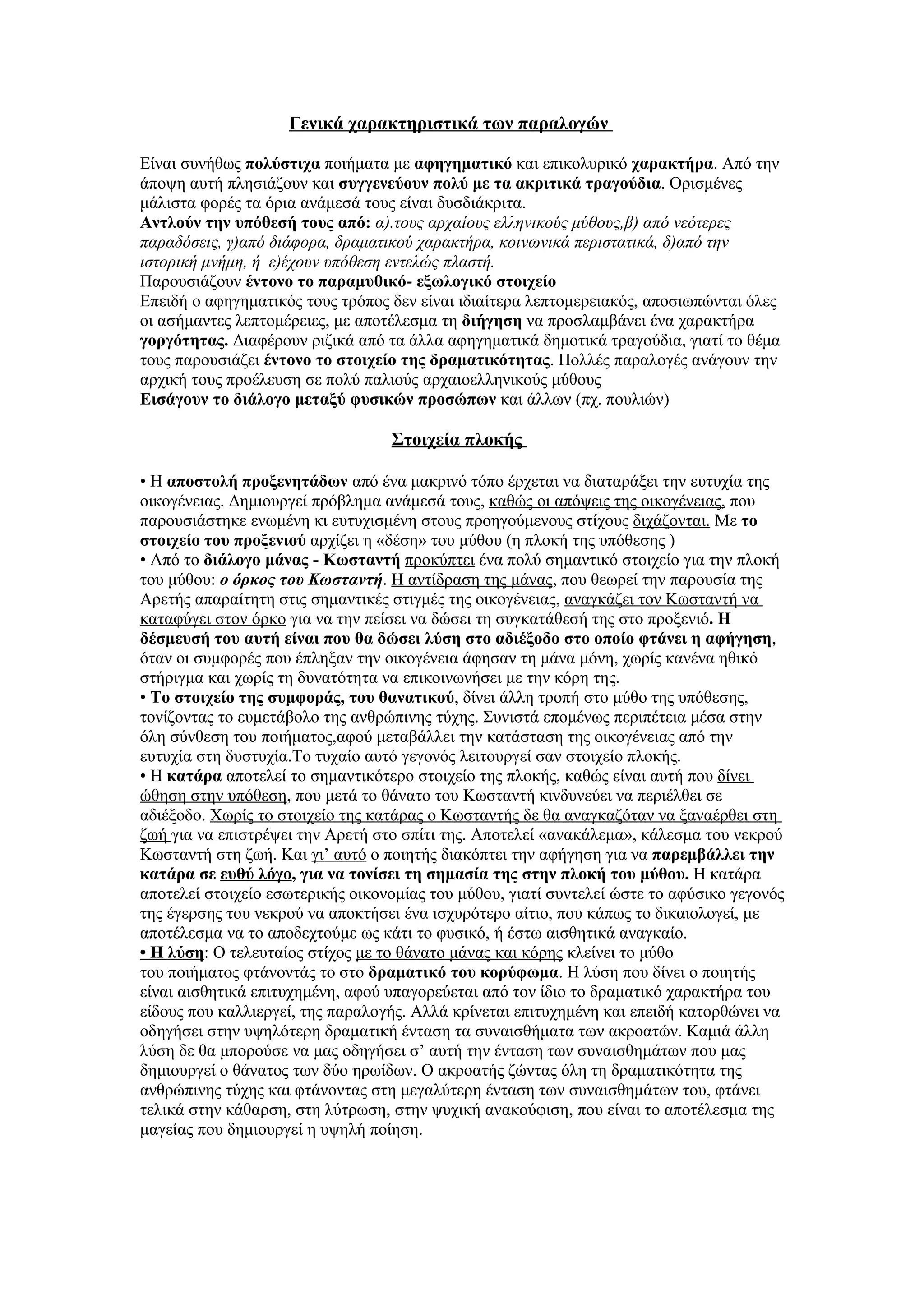 Γενικά χαρακτηριστικά τωνπαραλογών